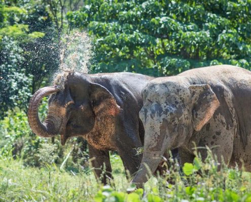 Elefanten schwimmen gerne, kühlen sich ab und plätschern im Wasser, und bedecken sich mit dickem Schlamm. Sie machen dies gerne alleine oder mit anderen Elefanten. Wenn sich jedoch Menschen während dieses Baderituals drängen oder mit ihnen interagieren, wird dies für die Elefanten anstrengend, sodass sie ihre Zeit im Wasser nicht genießen und ihr natürliches Verhalten nicht zeigen können.